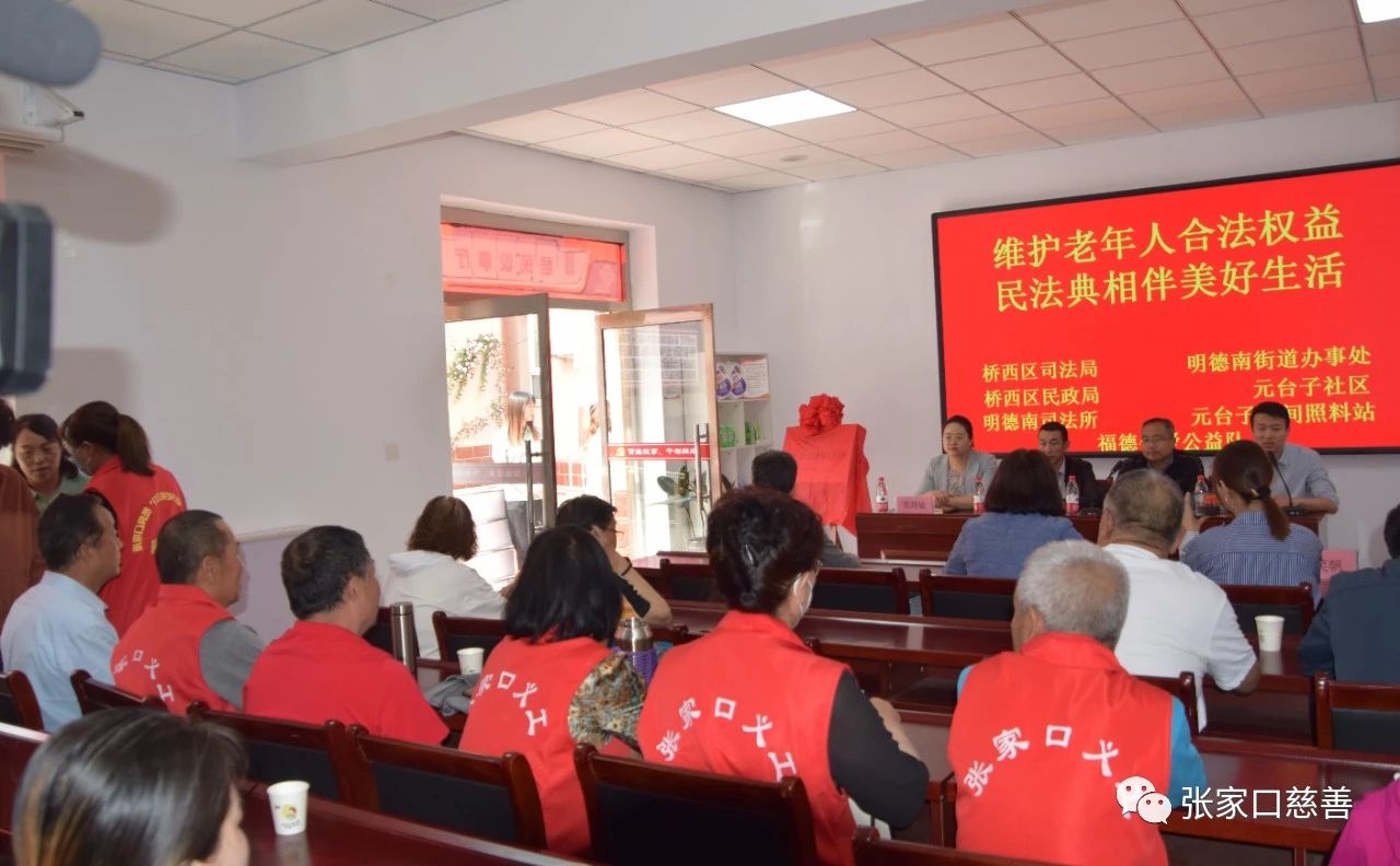 由桥西区司法局和民政局以“维护老年人合法权益,民法典相伴美好生活”为主题,在桥西区元台子社区主办了“法律援助扩面提质民生工程主题宣讲活动”。福德仁爱公益队全程为活动提供服务。