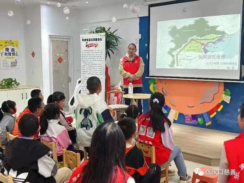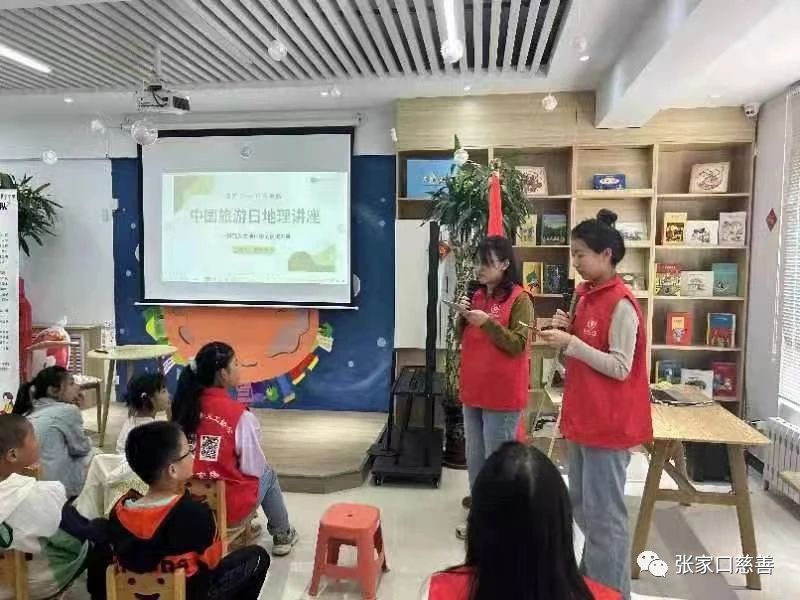 为激发小朋友们探索自然的热情、培养地理学科的核心素养,实现全面发展。5月21日下午,大学生专委会书香悦读志愿服务队和小吴同学书馆在书馆共同开展“读万卷书,行万里路”中国旅游日主题讲座。参加本次活动的有大学生专委会副会长吴潇、书香悦读志愿服务队队长柴美晓以及参加活动的小朋友和家长们。活动由队长柴美晓和贾圣辉主持,活动特邀张家口学院旅环学院的刘欢老师为主讲嘉宾,刘老师先后就读于中国地质大学、华东师范大学, 研究致力于地质资源与生态环境、 地理学思想史。刘老师精心的准备充分展现了“传道、授业、解惑”的名师风范。以道释理,以理论题。家长和小朋友们们专注听讲、细心记录。刘老师亦有问必答,指引提升。一个多小时的讲座很快结束,大家仍感觉意犹未尽,不少家长希望刘老师把课件留给他们,以便日后时时翻阅,消化理解,融会贯通,学习致用。