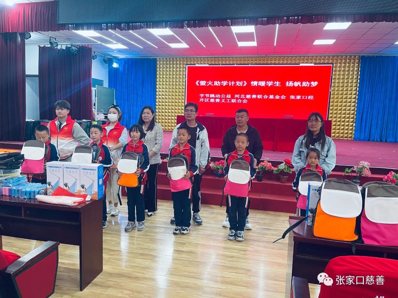 在“六一”国际儿童节到来之际,为进一步创造良好教学环境,呵护学生健康成长,张家口经开区慈善义工联合会在尚义县新兴街小学开展“六一”捐赠仪式,为学校对接河北慈善联合基金会项目“萤火助学计划”物资:书包、儿童保温杯、智能点读台灯、儿童旋笔刀、铅笔等学习用具。