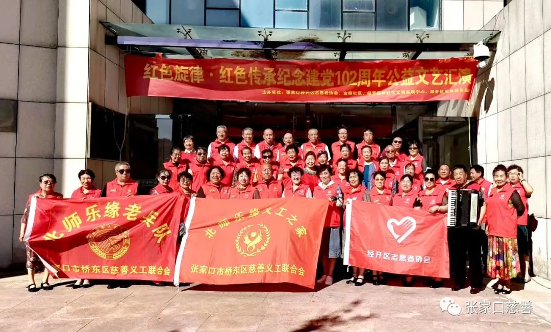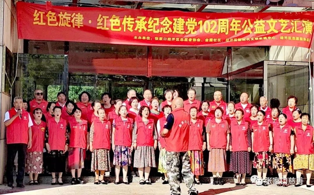 2023年6月21日下午5点开始由张家口经开区志愿者协会、金鹰社区、经开区新时代文明实践中心和经开区志愿服务总队在庆祝中国共产党成立102周年之际,共同举行了一场以“红色旋律,红色传承”为主题的公益文艺汇演活动。