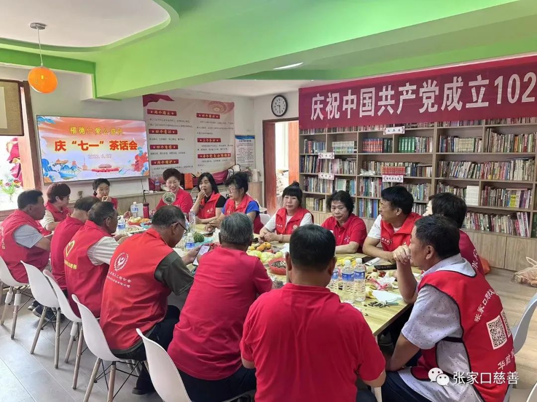 6月27日,福德仁爱公益队党支部在公益书屋召开庆“七一”茶话会。共同回顾中国共产党走过的102年路程。共同畅谈党的历史,谋划公益事业的新思路。