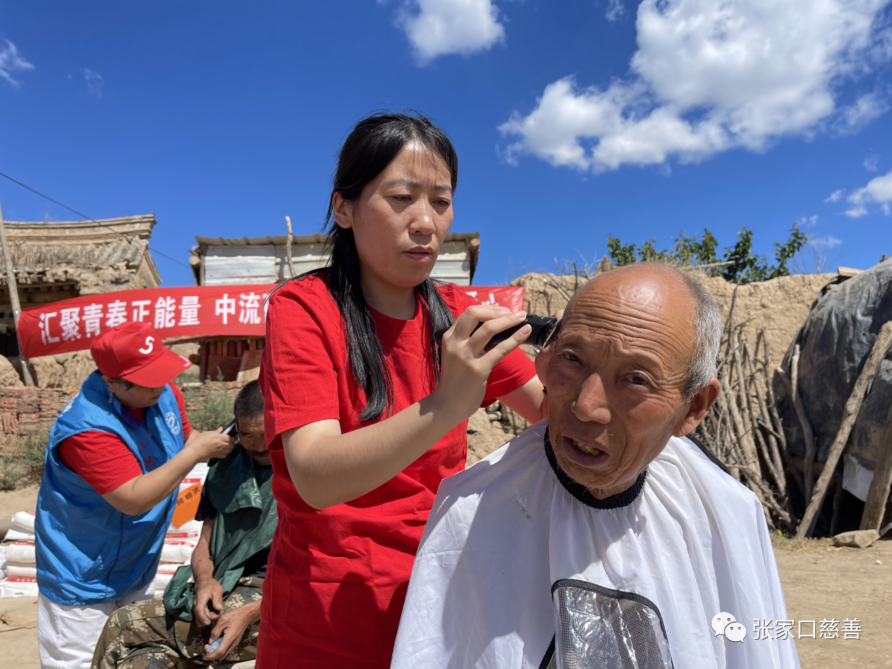 这边选的热闹,那边也没有闲着,慰问团成员将早已准备好的理发用具拿出来,先是“瞄准”头发已经板结到脖颈、盖住眼睛、腰上绕着一根绳子的那位老乡,拽着他坐在木凳上,十几分钟后,像是换了一个人,胡撸着自己的脑袋,这位村民不好意思地笑了,显然对自己的新形象非常满意。这一下,其它几位再也不用劝说,自己就坐到木凳上,不大一会儿,几个人都像年轻了几岁。