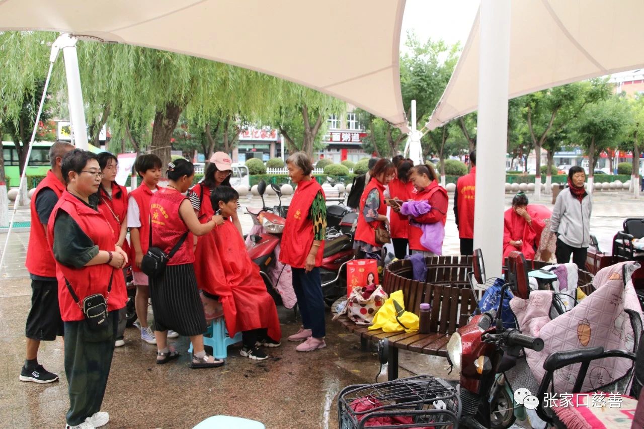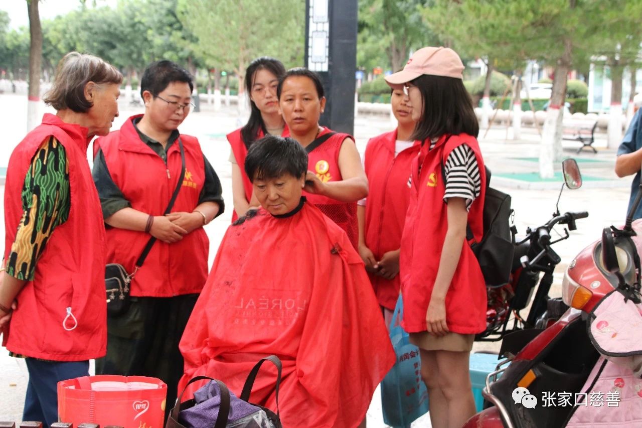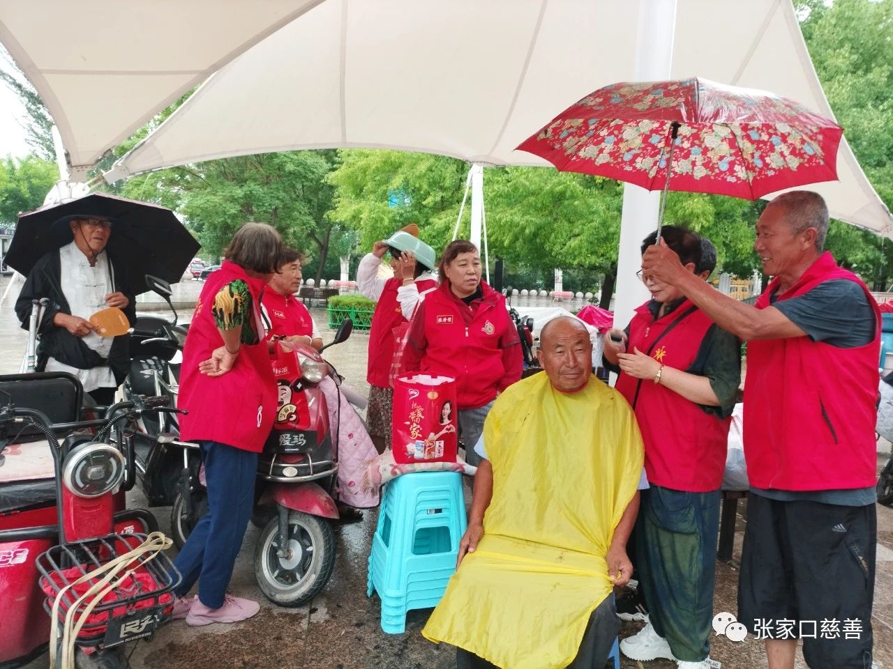 7月27日,天气炎热。队长吴桂荣,王文顺,秘书长郝桂云带领雷锋理发队焦树珍,刘忠,沈满花,薛艳花,宋露,王璐以及春风送暖队的张秀荣,陈孟楠共十二名志愿者在泥河湾文化广场举办本次义务理发活动。