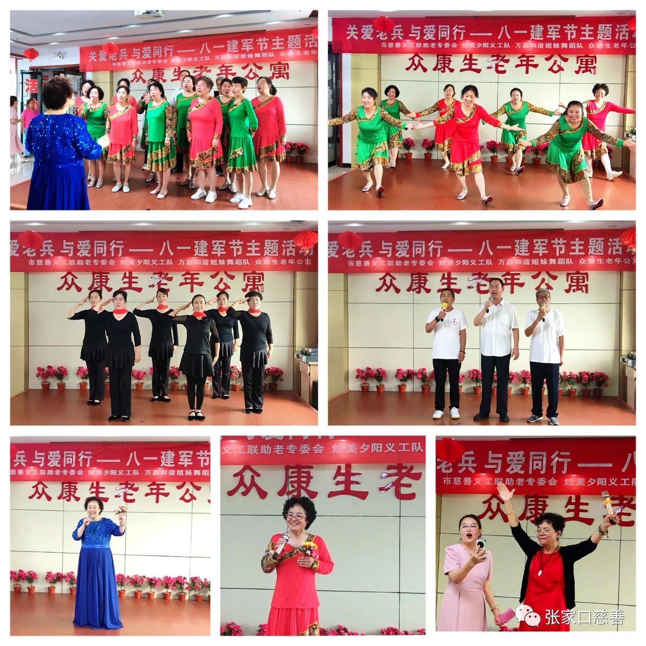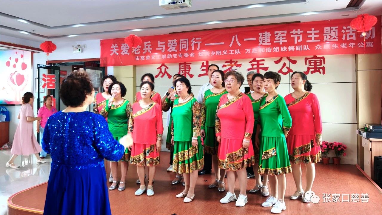 2023年7月31日上午9时,为庆祝中国人民解放军建军96周年,由市慈善义工联助老专委会、众康生老年公寓主办,炫美夕阳义工队、万嘉和谐姐妹舞蹈队协办的“关爱老兵,与爱同行”主题活动在经开区众康生老年公寓四楼会议室举行。参会的领导、爱心人士有:经开慈善总会会长王焕平,经开慈善总会秘书长赵英,《暴力田耀拍电影》总导演田耀,古垣易货商贸公司总经理张利、杨立,市慈善义工联助老专委会副秘书长黄树表和炫美夕阳义工队、万嘉和谐姐妹舞蹈队的志愿者、众康生老年公寓的退伍老军人、工作人员及入住老人共计50余人。