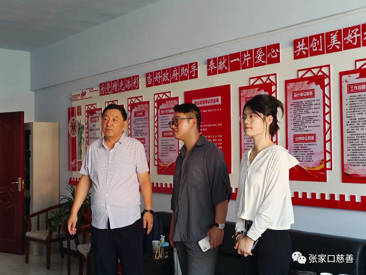 8月2日,中国乡村发展基金会活水计划项目组刘震、牛怡然两位老师莅临河北省阳原慈善义工联合会调研指导工作。下午2点30分,项目部经理刘震、筹款负责人牛怡然风尘仆仆从怀安县赶到阳原县,一下车,便马不停蹄地开始工作。他们首先在阳慈联会长刘立东的引领下,在副会长吕志强、会长助理郭海龙、副秘书长翟秀霞、牛树清、韩玉启以及部分大学生志愿者等陪同下,参观了阳慈联办公场所,听取了刘立东会长就平台的工作汇报,深入了解了阳慈联的宗旨目标、服务理念、发展历程、品牌项目等,对阳慈联爱心平台的工作表示赞赏。