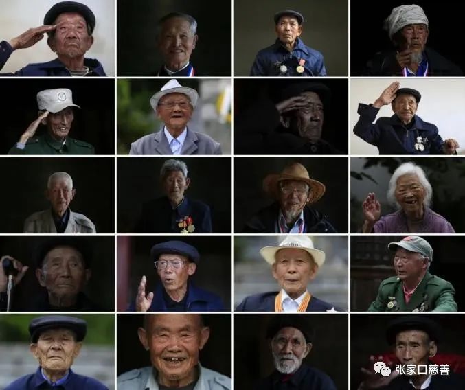 20位中国远征军滇西抗战老兵的拼版图片。新华社发(田卫涛 摄) 英雄受人敬仰 奋斗自有来人