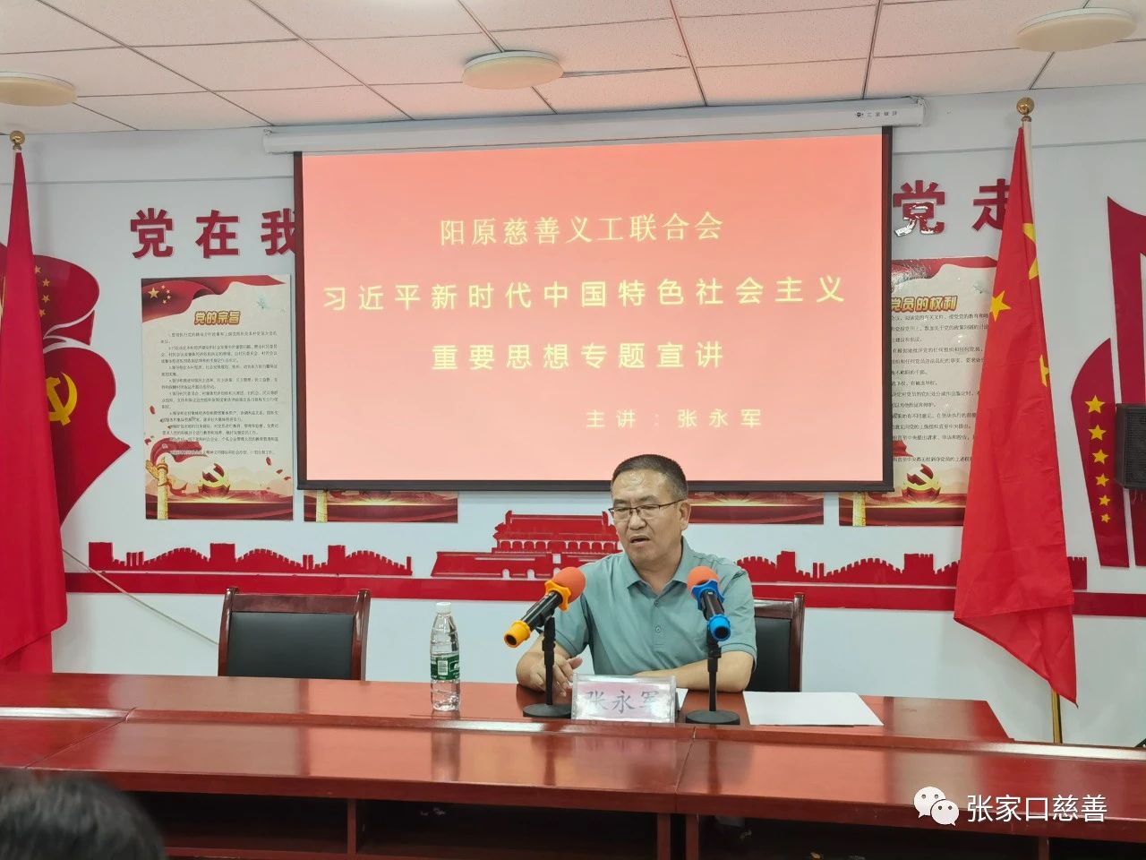 根据县委组织部安排,8月14日,阳原慈善义工联合会党组织集中学习习近平新时代中国特色社会主义思想。阳原县教育学会秘书长、阳慈联党建指导员张永军应邀作专题宣讲,阳慈联爱心平台负责人、入党积极分子、优秀志愿者二十多人参加了学习活动。