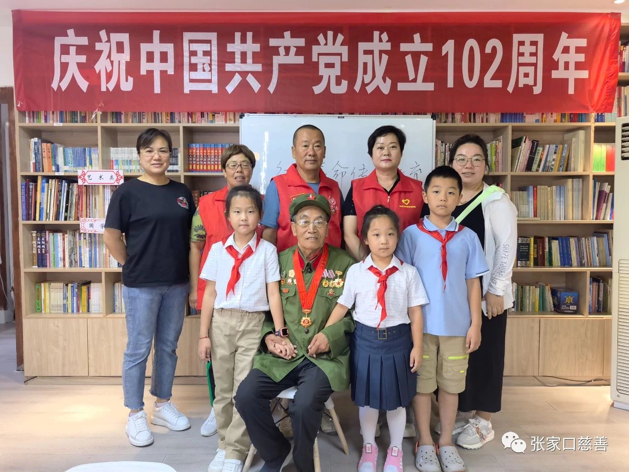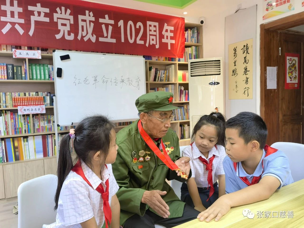 8月24日,桥西区蒙古营小学的三位小朋友和各自的家长走进公益书屋,接受开学第一课的红色革命教育。福德仁爱公益队队长毛艳芳主办了这次活动。福德仁爱公益队六十年党龄的老党员,六十年军龄的老军人李书庭给孩子们讲课,传承红色基因,讲述革命历史。