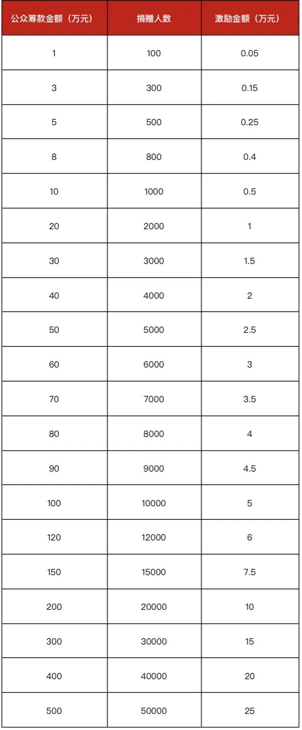 • 激励规则:2023年9月7日10:00~2023年9月9日24:00,非配捐时间段的公益项目公众筹款金额和捐赠人数两项指标均达标,对应项目可获得对应激励金额;激励金先到先得,配完即止;每个公募机构可获得的激励金上限为200万元;