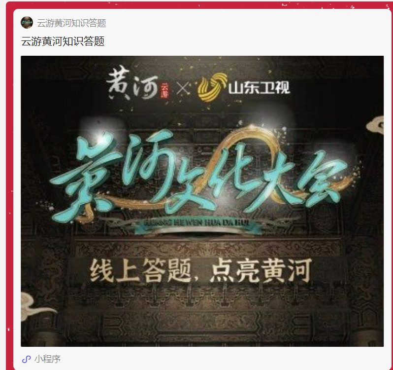 点击进入“云游黄河知识答题”小程序 小程序每日8点更新题库, 参与答题,手动领取小红花