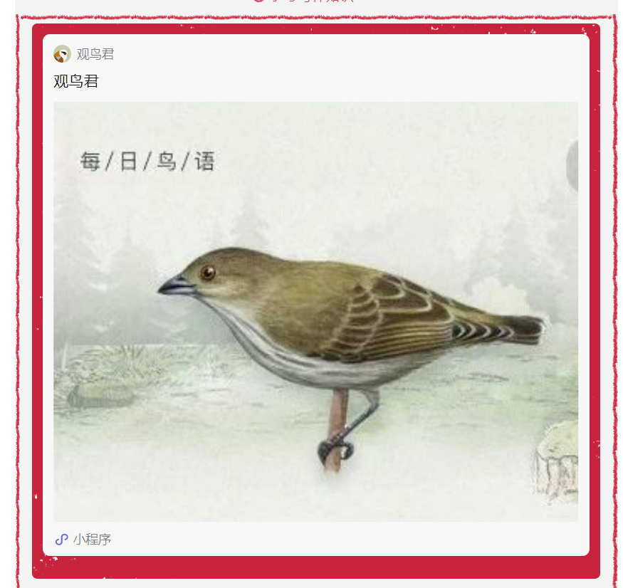 点击进入“观鸟君”小程序 添加记录→任选→种鸟类→ 保存并提交→手动领取小红花