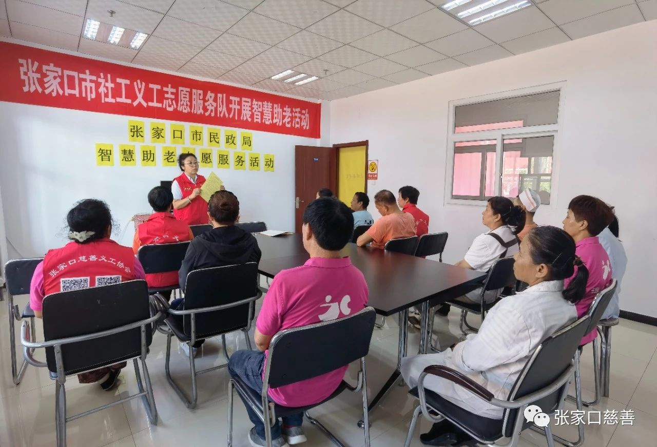 2023年8月30日下午14时30分,众康生义工志愿服务队联合阳光行志愿者协会组织开展的“关爱老年人,智造新生活”智慧助老志愿服务活动在经开区众康生老年公寓和桥西区捷成养老院同时举行。应邀参加活动的有市慈善义工联助老专委会会长高海清,在经开区众康生老年公寓、桥西区捷成养老院颐养的老人和众康生义工志愿服务队、阳光行志愿者协会的志愿者共计30余人参加了此次活动。