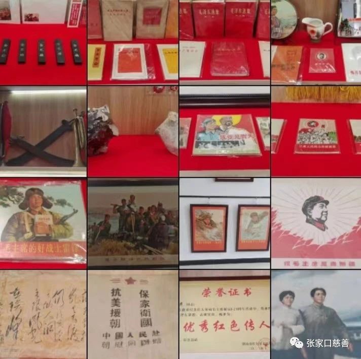 黄继光,邱少云,杨根思,刘胡兰,董丛瑞,雷锋,冮姐,杨靖宇,革命先驱李大钊,吉鸿昌,等老一辈革命家,还有伟人头像和伟人画像,中国领导人的手工,铜,瓷雕像,文革宣传挂像。翼察边区手工制作的土地雷。红军长征时期的背包,上面写着:红军不怕远征难。五十年代的抗美援朝的粗布口袋。上写,抗美援朝,保家卫国。等等,一仟多件。