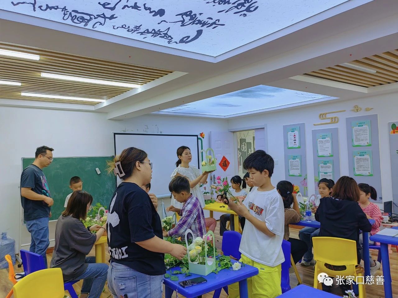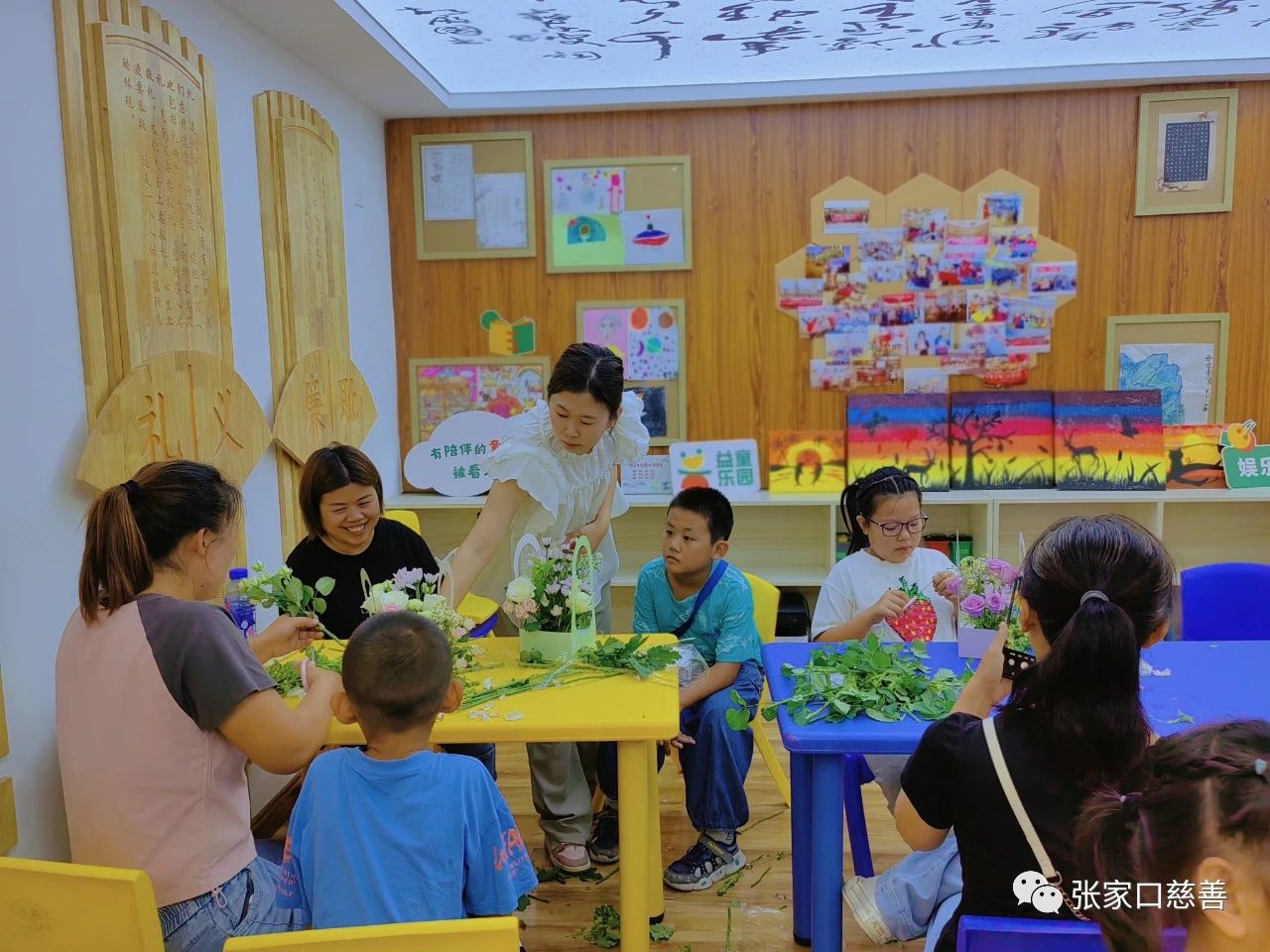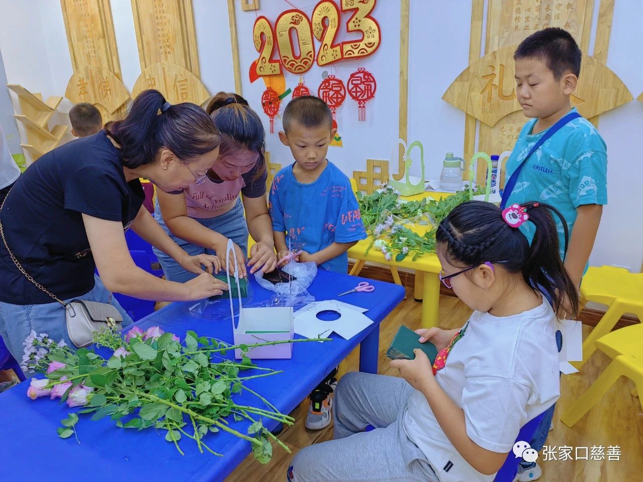 为促进亲子沟通、协作能力,营造温馨愉悦的亲子家庭氛围。2023年9月3日义工联青少年发展专委会联合岭秀城社区、益童乐园张家口岭秀城站点组织青少年开展“以花为礼,开学第一课”插花体验亲子特色活动,共15组亲子家庭报名参加。