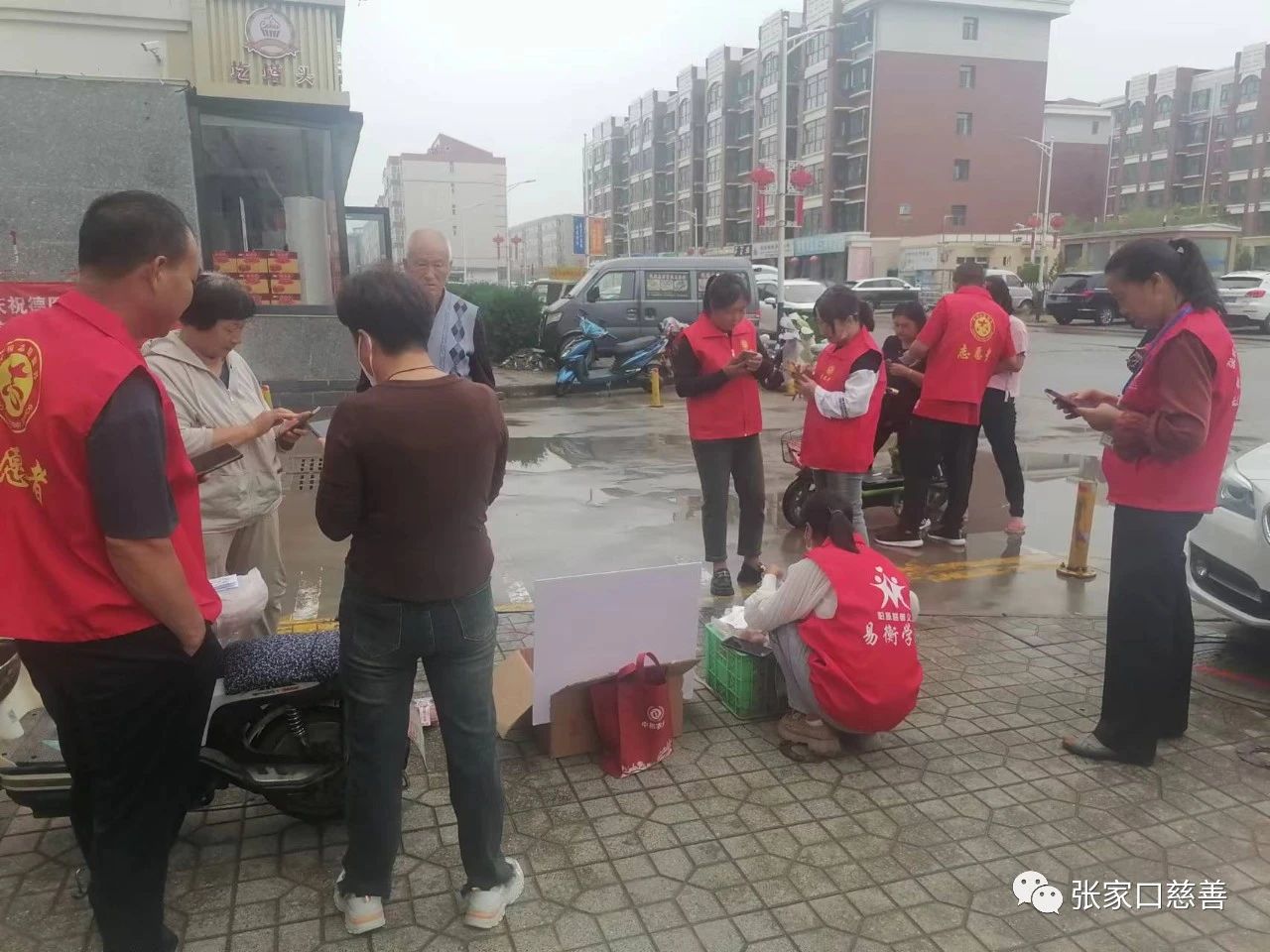 9月8日,从凌晨开始雨淅淅沥沥一直连绵不断,却丝毫未影响到东方弘州合作队现场参与“生命续航计划,捐一元领鸡蛋”活动,为多得配捐,原定于十点开始,加上队长一行志愿者十二人却九点就已到小区门口,有的志愿者担心鸡蛋袋装的份数多,居民领后万一袋子有漏的情况,就带着自家食品袋又给每份上面套一个袋,有的以防扫码人多卡网,除了认真讲捐款步骤还同时把自己手机流量设置热点分享,他们俯身手护纸质二维码,深怕淋了雨居民扫不清,耽误时间,同时还不忘,仔细查看每一笔善行捐赠是否操作正确,他们身穿红马甲,微笑着将每份鸡蛋送到捐赠人的手里、不方便停车司机的车窗口、后座上载着放学孩子妈妈们的车筐里……居民们手拿鸡蛋望着雨中忙乎不停的志愿者,脸上笑容中带着心疼,几个年长的阿姨说:“咱阳原凤凰城门口这一大队爱心大使不就是他们自己给咱们讲的腾讯公益小红花吗?”