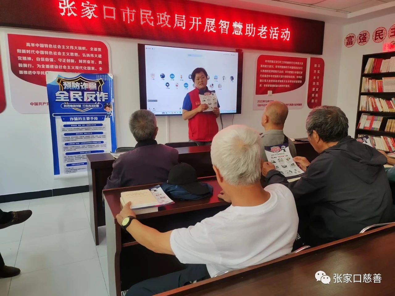 9月26日,由张家口市民政局主办的智慧助老活动,在桥东区东方苑社区举行。福德仁爱公益队毛艳芳队长带领部分队员参加了这次活动,毛艳芳在活动中主讲了老年人怎样防止电信诈骗的相关知识。