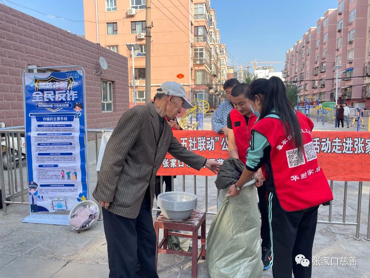 秋高气爽、微风吹拂,在物业经理提前发布消息的情况下,部分社区居民前来询问,得到肯定答复后,大家纷纷回家收拾出自己闲置的衣物捐献出来,有一位大爷捐出了3件旧衣服,虽然不多,但衣服扔了吧可惜了,捐了还能做好事,真不赖,大爷说。作为被犯罪分子诈骗的重点人群,在捐衣的同时,还能了解学习一下防诈骗知识,真是及时又有用。