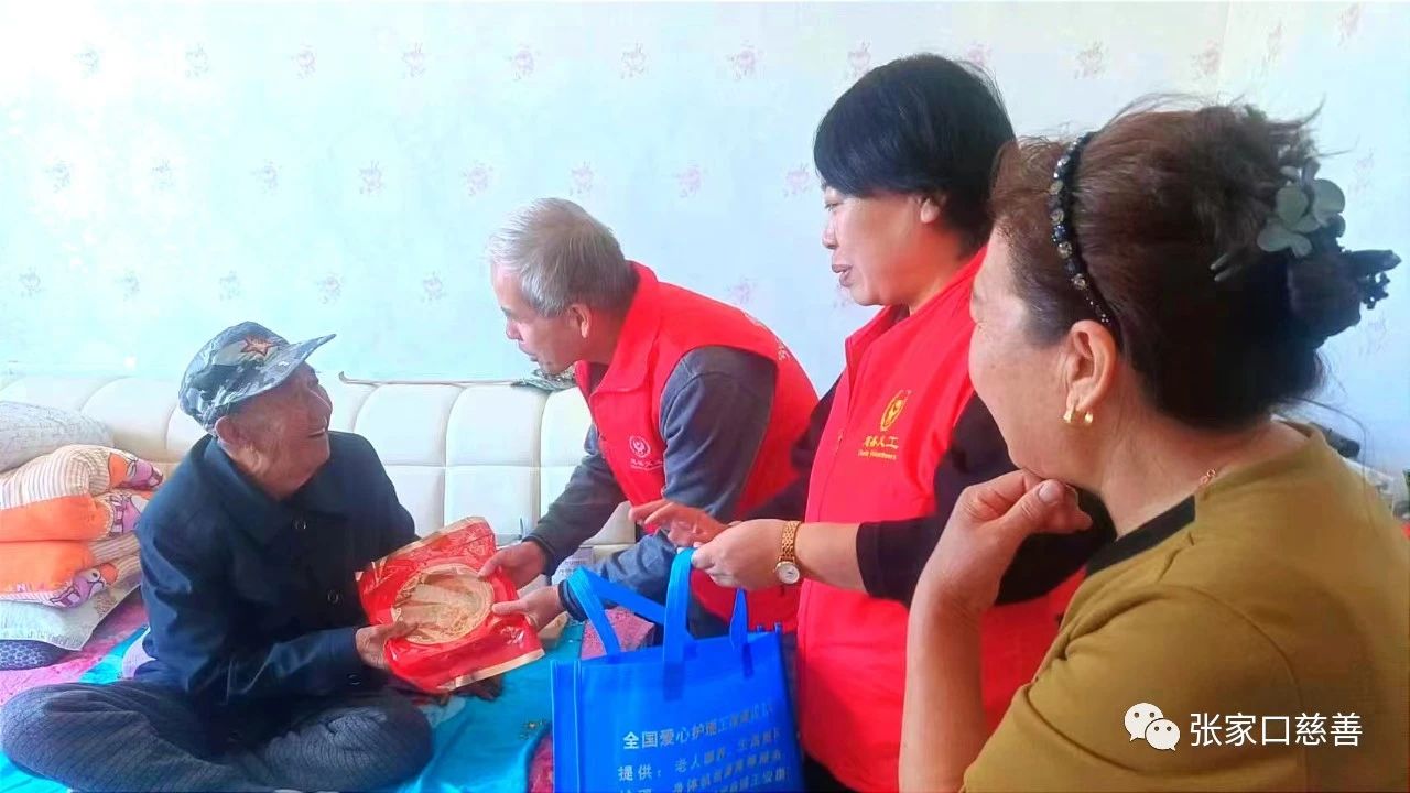 在“中秋”、“国庆”双节即将来临之际,为弘扬中华民族“尊老、敬老、爱老、助老”的优良传统,2023年9月28日上午,众康生义工志愿服务队队长黄树表和10名志愿者带着精心准备的中秋团圆月饼来到经开区银河湾社区,对接银河湾社区、银河湾社区日间照料站和奥星物业公司的工作人员,一起走进高龄、独居、残疾和孤寡老人等困难家庭,开展关爱慰问活动,祝福老人们身体健康,节日快乐,晚年幸福!张家口慈善义工联助老专委会副会长王晓桐应邀参加了此次活动。