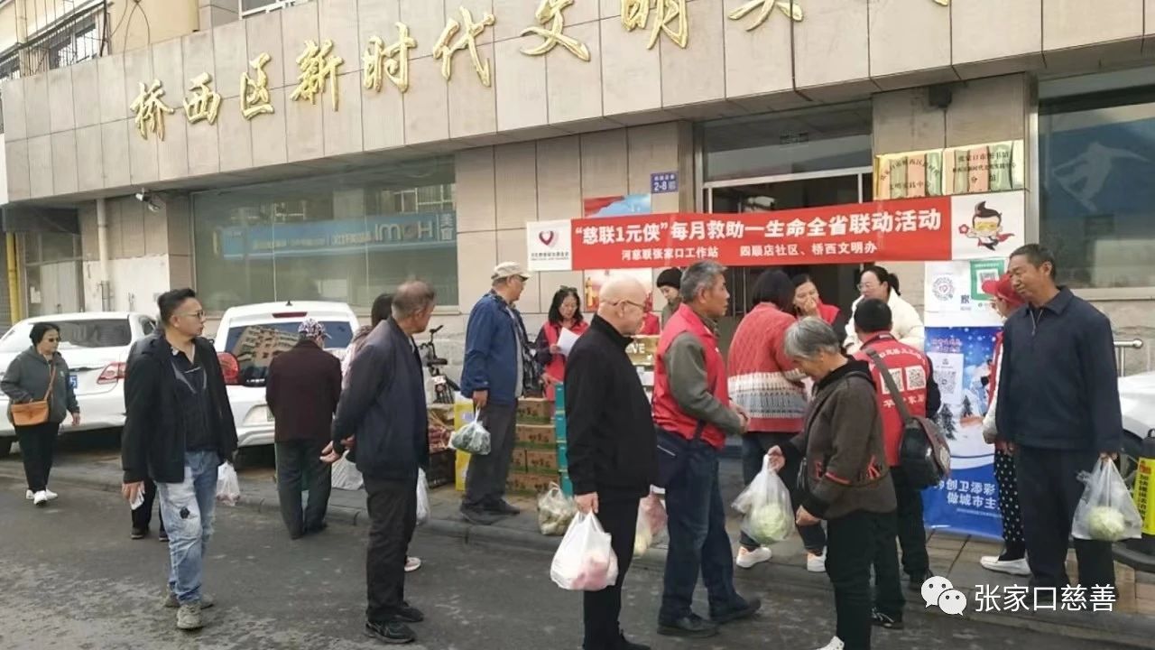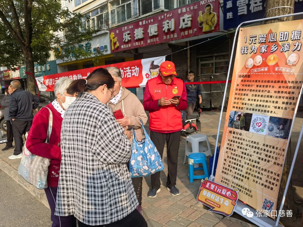 为营造“人人参与慈善人人皆可慈善”的良好公益氛围,同时救助更多大病患者,河北慈善联合基金会联动全省各市县工作站开展主题为“慈联1元侠 每月救助一生命”线下公益活动,爱心人士通过现场扫码捐赠1元即可获得3枚鸡蛋作为爱心回礼。10月12日,张家口慈善义工联合会同时在11个社区开展“慈善1元侠”公益活动,活动现场爱心人士纷纷驻足询问,积极扫码捐赠,为困境重症患者送去自己的一份爱心;同时志愿者老师们也积极响应,作为现场服务人员报名参加“慈善1元侠”活动,为爱心人士进行现场讲解,每个人都在用自己的实际行动支持此次公益活动。活动现场热闹非凡,处处涌现着温馨的氛围。