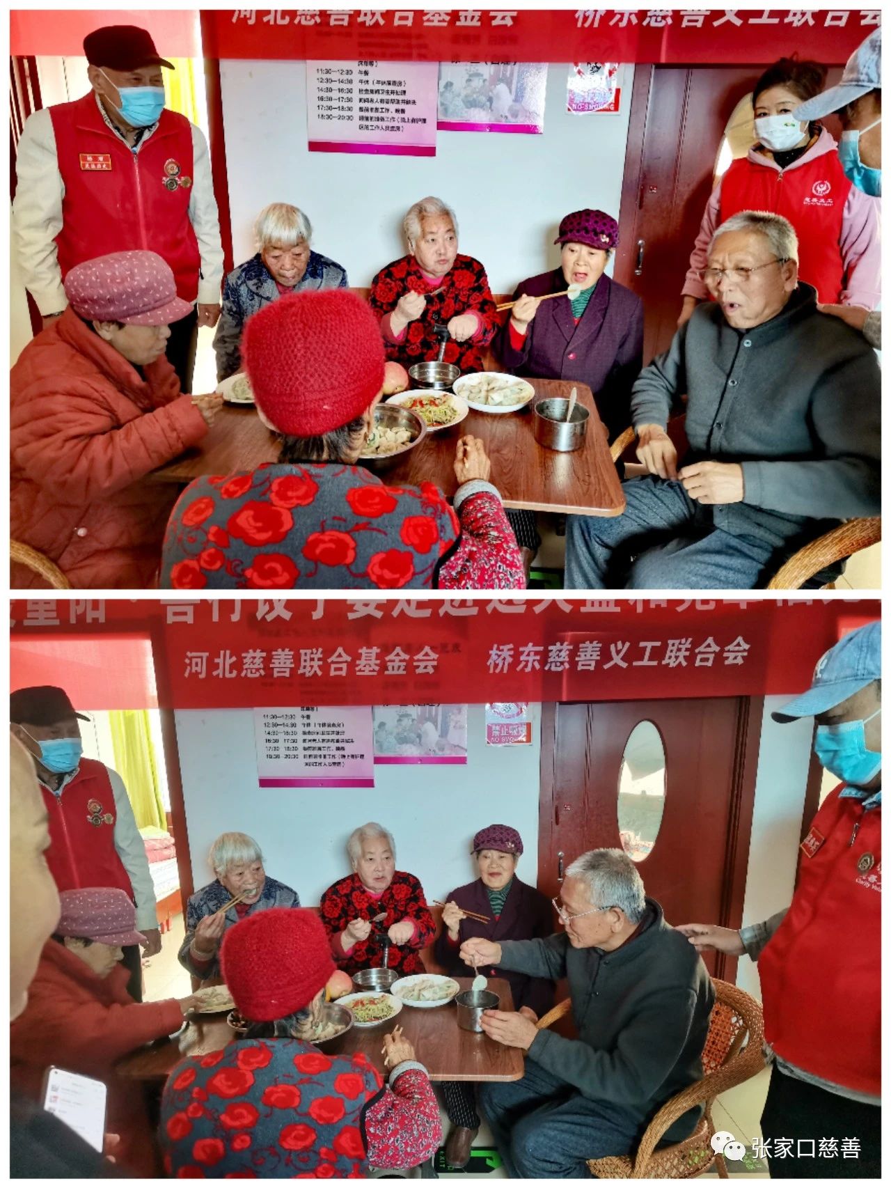 敬老院院长王海燕对北师乐缘义工之家志愿者一行人的到来表示热烈的欢迎和诚挚的谢意,非常感谢桥东慈善联合会以及北师乐缘义工之家志愿者们多年来的关心和慰问,在中国共产党的英明领导下,有这么多热心的领导及志愿者无私奉献默默关心着老年人的晚年生活,让她们这些在敬老院的服务人员心存感激,她们更有决心和信心照顾好所有入院的老年朋友,让他(她)们安享晚年。北师乐缘队长吴浩然看到敬老院的老人们各个精神饱满红光满面的样子感到非常欣慰,她祝老年朋友健康长寿,并代表河北慈善联合会为大家送来了花生油、白面、蔬菜、鲜肉、水果等等,让老年朋友过一个开心快乐的重阳节。志愿者们一起为老人包饺子做小菜,看老人们吃的那么开心那么快乐,每一名志愿者的脸上露出了欣慰的笑容。