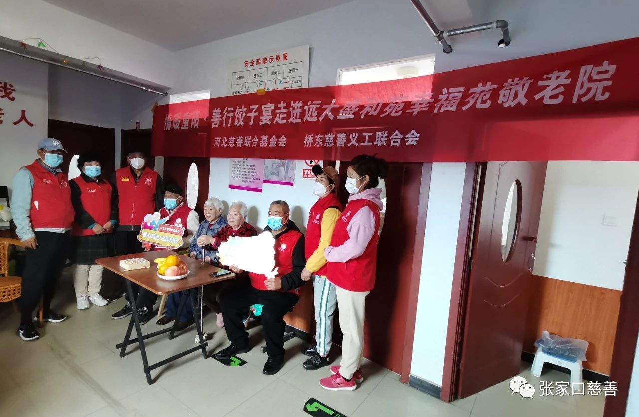 最美不过夕阳红,重阳节之际,10月22日,由河北慈善联合会发起的“善行饺子宴,情暖重阳”活动由桥东区慈善义工联合执行秘书长吴浩然和专职王艳涛带领北师乐缘志愿者走进位于远大盛和苑?幸福苑敬老院,和敬老院里的护理人员一起,共同为老人送上中国的传统美食和节日的祝福。