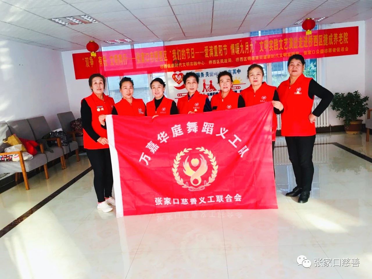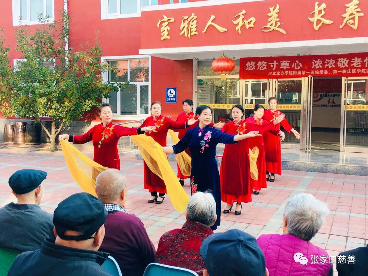 10月22日,张家口慈善义工联万嘉华庭舞蹈队的冀生梅队长带领队员们和河北北方学院附属第一医院团委、第一临床医学院团委的志愿者20多人来到桥西区捷成养老院,志愿者们为老人献上形式多样、热情洋溢的表演,有歌有舞,还有三句半和手指游戏,不同的形式,同一个主题,舞蹈队的姐妹们表演了《爷爷奶奶和我们》的舞蹈、《最美不过夕阳红》模特走秀,愿夕阳之花绽放出更加绚丽的光彩,愿健康和欢乐与老人常伴。结束了文艺演出,大学生志愿者们来到老人的房间,为每位老人送上菊花茶及重阳节祝愿。入住老人杨淑慧高兴的为志愿者们唱了一曲《小白杨》表示感谢。