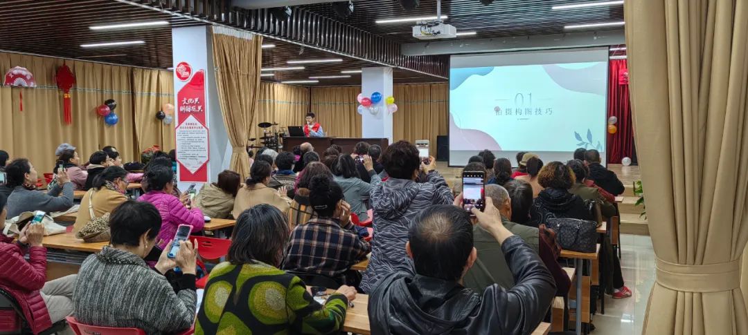 手机摄影对于老年人来说比较有趣又富有挑战性,活动发布后吸引了70多位老年人报名参加。活动中,授课老师王涛带领老年人了解了手机相机的基本功能,随后向大家逐步介绍如何拍摄一张好的照片,在拍摄时要注意摄影构图、采光、拍摄角度等。还讲解了手机录像和制作小视频的方法。在场的每位老年人都听得专心致志,认真做笔记,活动现场气氛十分温馨热烈。