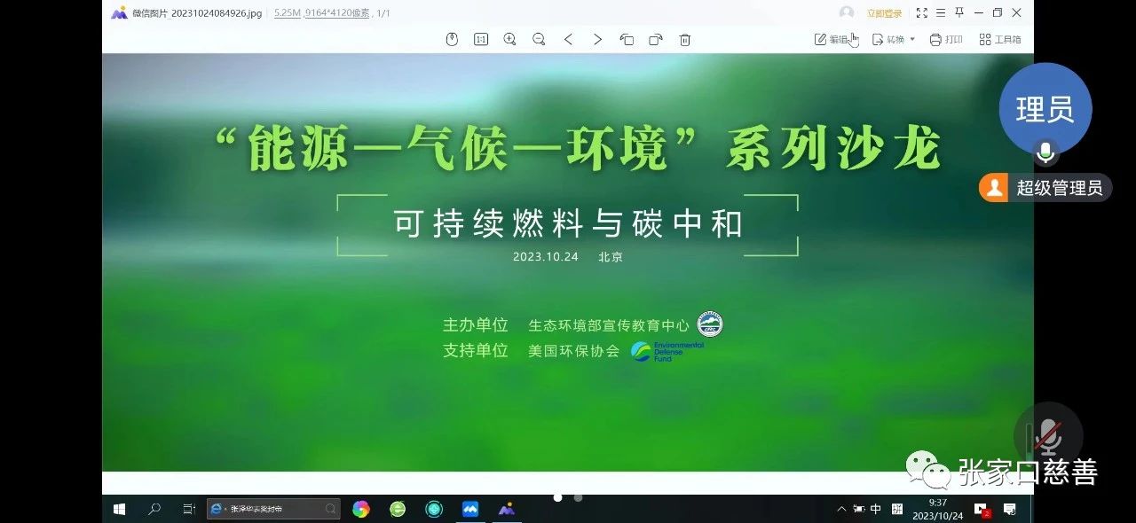 2023年10月24日上午,白鹭环保志愿者服务队以腾讯会议方式参加了由生态环境部宣教中心举办的可持续燃料与碳中和“能源—气候—环境”线上+线下系列沙龙。