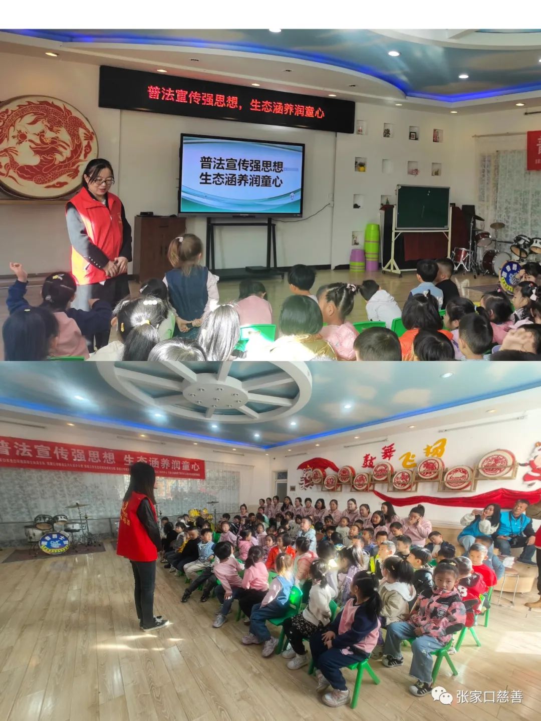 为进一步推进生态文明和环境保护法律法规宣传活动,11月3日上午,张家口市慈善义工联合会白鹭环保志愿者服务队携手张家口市生态环境局综合执法支队、张家口市生态环境局桥西区分局、张家口市桥西区河长制办公室、张家口市桥西区农业农村局、张家口市桥西区社工指导中心等多个志愿者服务队走进桥西区名族幼儿园开展了“普法宣传强思想,生态涵养润童心”主题宣传活动。