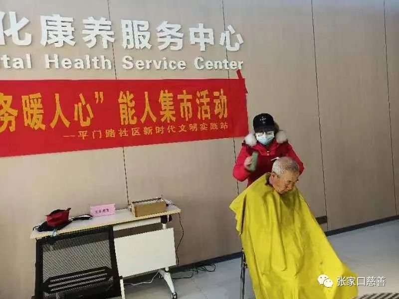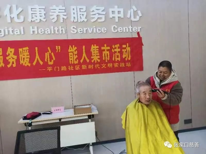 今天是立冬以来最冷的一天,大家顶着凌冽刺骨的寒风,来到活动地点桥西区数字化康养服务中心。我们来的比较早,一同搬来桌椅布置活动现场,参加活动的人员陆陆续续到场了。虽然外面很冷,进屋后人们一会就被现场活动温暖了。利他义工团队张建花、郑兰芝、董成涛,为社区老人理发,助残专委会利用听力测试专用车为社区居民进行听力测试,八十多岁的老军医为居民进行常规医学咨询,听诊、号脉。还有张家口学院医学志愿者为居民测血糖,测血压,还有法律咨询的,在这次能人集市活动中大家都极尽所能发挥着各自的特长为服务于社区。