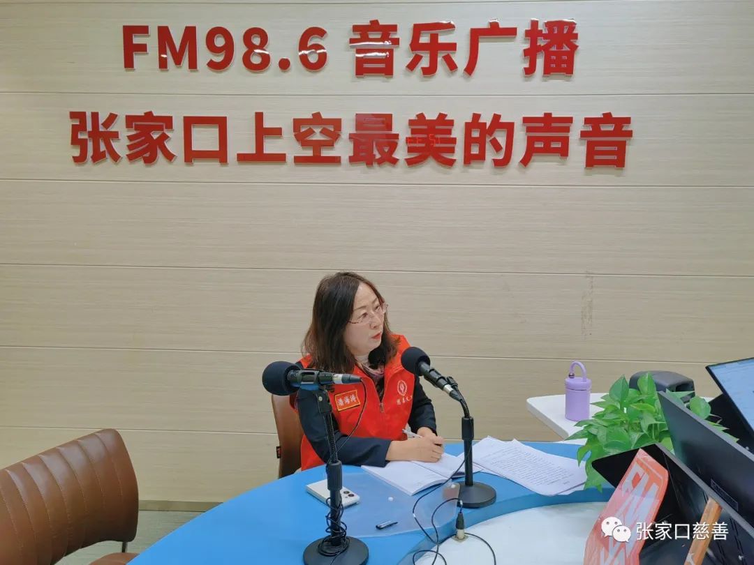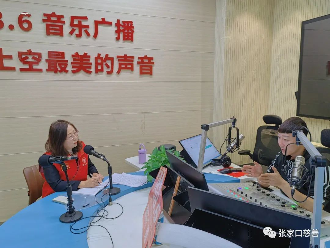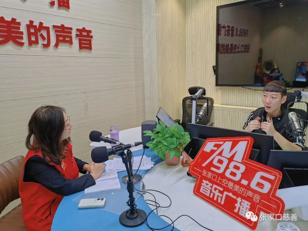 2023年11月24日上午,张家口慈善义工联合会妇联主席潘海涛和张家口慈善义工联合会妇联宣传委员刘芸芸作为嘉宾受邀参加了张家口986音乐广播《启航音乐时间》节目。在节目中,他们与986音乐广播电台的主持人启航老师共聚一堂,共同探讨了关于“代理爸妈”公益项目的话题。