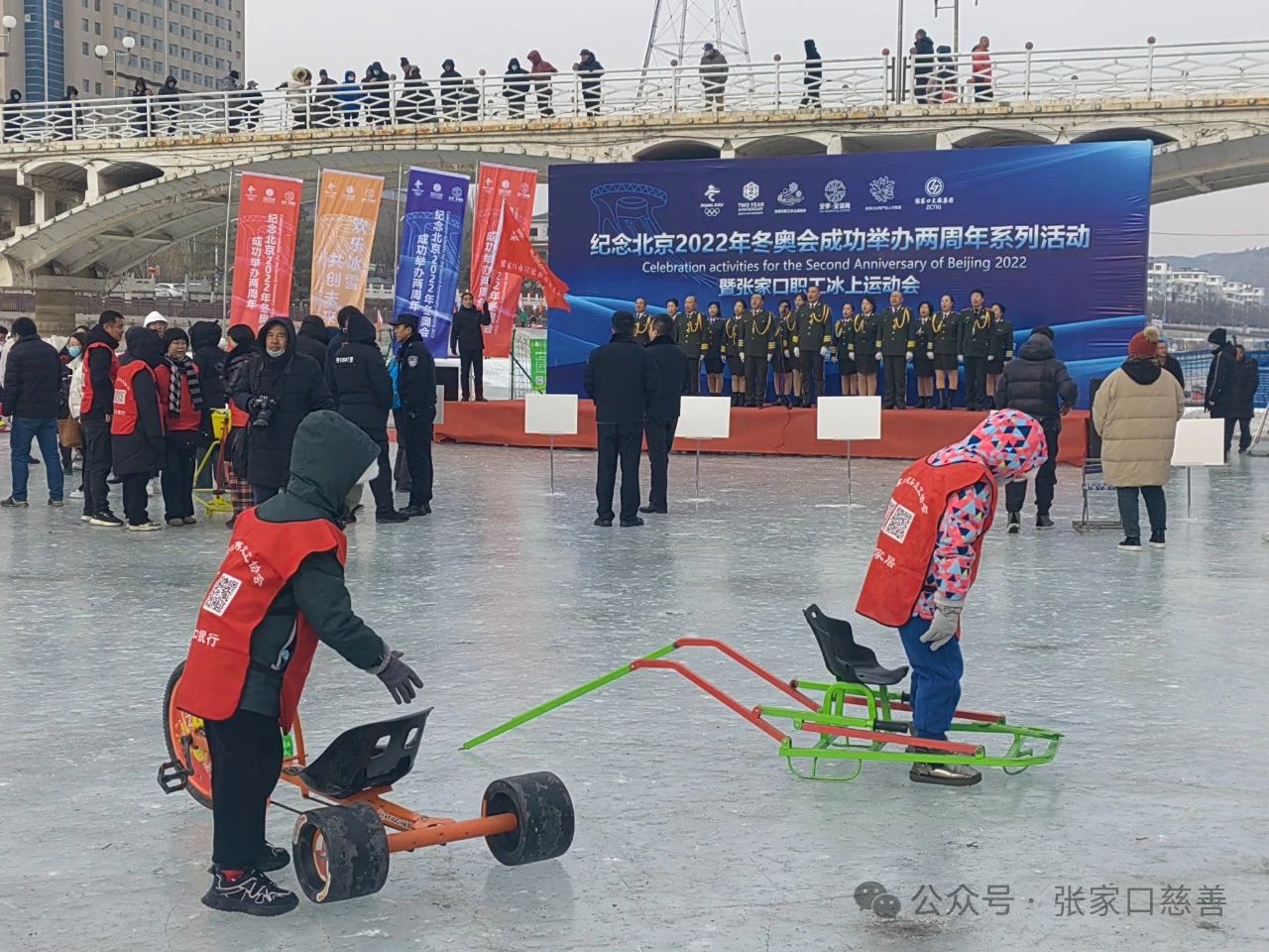 为了全面贯彻“广泛开展全民健身运动,促进群众体育与竞技体育全面发展”的重要论述精神,积极响应市委组织部关于“健康相伴·活力张垣”社区趣味运动会的倡导与要求,深入推动全民健身国家战略的实施以及京张体育文化旅游带的建设,丰富居民群众的体育文化生活,张家口慈善义工联合会应急救援专委会特别举办了一场别开生面的“幸福张家口 红火过大年”张家口首届冰上趣味运动会。