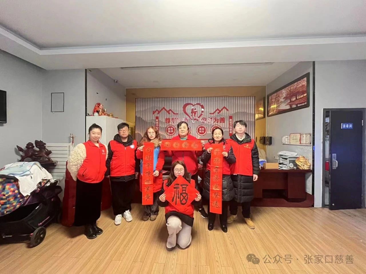 活动现场,张家口书画院的黄光端老师、马泽民老师挥毫泼墨,专注于笔尖,一幅幅遒劲有力清爽洒脱的新春祝福,带着清新的墨香跃然纸上,书写出一幅幅赞美幸福生活、寓意美好吉祥的春联。不一会儿,一幅幅火红的对联和“福”字就呈现在大家眼前,散发着淡淡的墨香,弥漫着浓浓的年味,寄托着对新年美好生活的憧憬和向往,展现了中国传统文化的魅力,志愿者把新春春联与祝福送到了社区居民与养老院的老人手中。