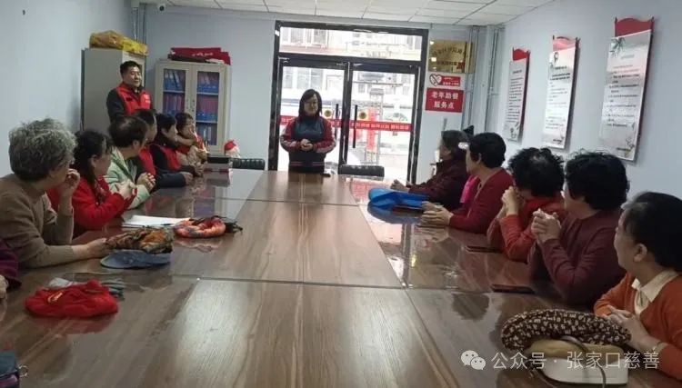 贾书记做了简短的发言 近年来,社区心系辖区老人,为他们提供娱乐场所、给老年人中午提供供餐服务,近期为进一步丰富老年人精神生活又引进了传统文化的学习,与张垣美德文明十二家一起每周日下午举办《弟子规》读书会,举办家风文化进社区分享会,寒假举办国学经典诵读,春节前举办腊八节喝腊八粥、写春联等一系列活动,努力让老年人老有所乐、老有所依、老有所为。今天雷锋活动日,社区与文明十二家的家风志愿者一起慰问这些老人,让她们过一个有意义的学雷锋纪念日。