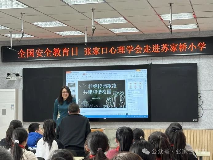 今年3月25日是全国第29个中小学生安全教育日,为切实加强青少年学生法治教育和心理健康教育,有效预防青少年违法犯罪和校园霸凌事件的发生,增强青少年学生安全意识和自我保护能力,3月25日,张垣博爱志愿者团队携手张家口心理学会、桥西区社会工作指导中心在苏家桥小学开展“拒绝校园霸凌 维护校园和谐”主题宣传活动。活动中,张家口心理学会的曲重莲会长,通过专业的心理健康知识讲授、有趣的互动及场景演练等方式,帮助学生更深入地认识了自己。曲会长还为孩子们进行了心理疏导,教学生充分认识到什么是校园霸凌行为,引导学生树立正确的世界观、人生观和价值观,自觉抵制各种不良行为,遇到校园霸凌现象时,要善于拿起法律武器,学会用法律手段保护自己,敢于向校园霸凌行为说“不”。同时学生们通过分享自己的感悟,了解到自身情绪产生的原因,同时也提出增强体育锻炼可以更好的掌握情绪。学生们纷纷表示,本次讲座帮助自己建立了良好的心态,使自己能够更好地适应学校的学习生活。