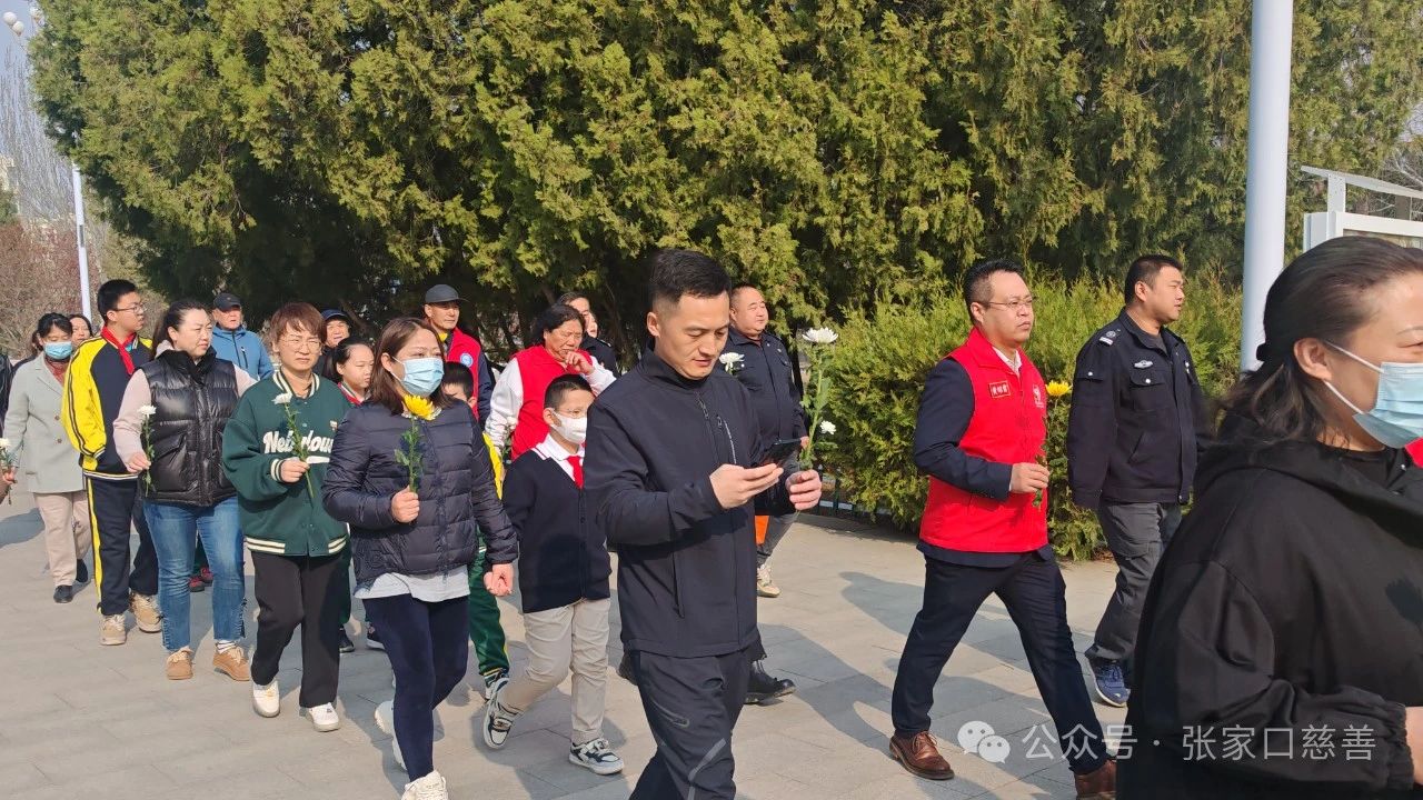 4月4日,福德仁爱公益队联合东方苑社区在张家口察哈尔烈士陵园开展清明节祭扫活动。