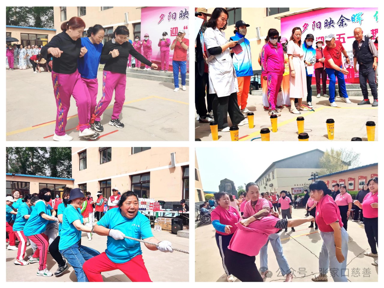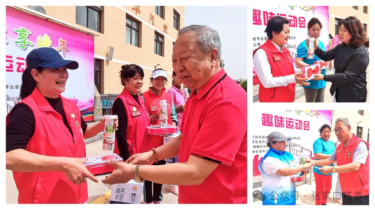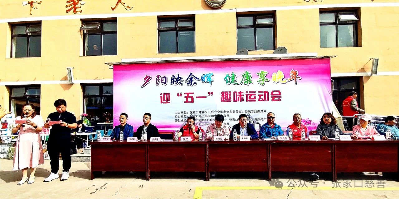 2024年4月25日上午,“夕阳映余晖*健康享晚年”迎“五一”老年趣味运动会在经开区众康生老年公寓举行。这次迎“五一”老年趣味运动会是由张家口慈善义工联合会助老专业委员会、助残专业委员会主办,经开区众康生老年公寓协办,参赛队经开区阳光行志愿者协会、利他义工之家、众康生义工志愿服务队、长宁街炫美夕阳红义工队、北师乐缘义工之家、张家口龙之队义工之家、众康生老年公寓队、 海豚志愿服务队和王安房村舞蹈队的志愿者、老年人及工作者150余人参加了这次赛会。应邀出席开幕式的嘉宾有姚家房镇武装部部长朱海东、经开区民政局养老科科长蔡晓磊、张家口慈善义工联合会党委副书记冀桂宝、市慈善义工联妇联副主席王雪莹,市慈善义工联工会副主席李尚林、市慈善义工联助老专委会会长高海清、助残专委会会长孟富、张家口泉州商会秘书长康长海、张家口垣荣耀优品连锁超市总经理曹新博、张家口爱伲雅口腔种植牙中心总经理杨博宇。运动会奖品由张家口爱伲雅口腔种植牙中心、张家口康垣荣耀连锁超市、经开区众康生老年公寓提供赞助。