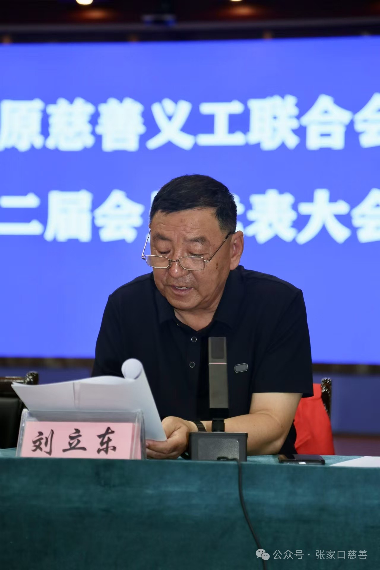 刘立东会长代表阳原慈善义工联合会报告工作,他从党建引领、助学济困、尊老敬老、创城创优、助残暖阳、乡村振兴、名医义诊、应急救助、服务冬奥、疫情防控、文化传播等11个方面全面总结了阳慈联五年来所做的工作;对各级领导和社会各界的广泛支持和高度认可表示真诚的感谢!对广大志愿者的无私奉献表示衷心的敬意!