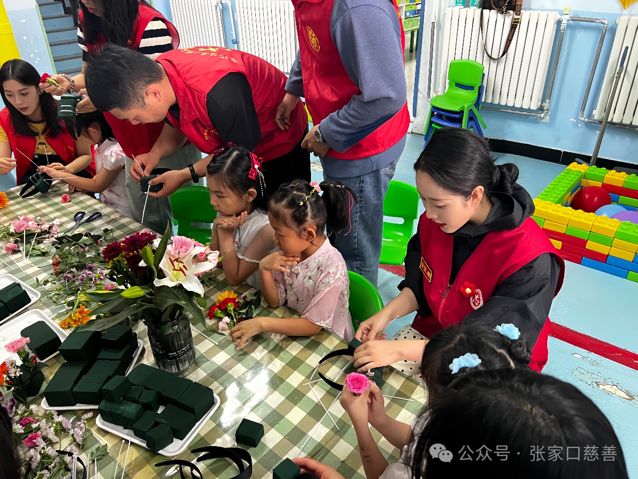 活动伊始,专业的花艺老师用简单易懂的语言,引领小朋友们走进了花的世界。他们不仅学习了如何识别各种花材,还掌握了色彩的搭配与摆放的技巧。在老师的悉心指导下,小朋友们化身为小小花艺师,与志愿者们一同创作。现场气氛热烈而温馨,孩子们的热情与创意交织在一起,将零散的鲜花变成了令人赞叹的艺术品。花香弥漫在空气中,每一朵花都承载着爱与希望。