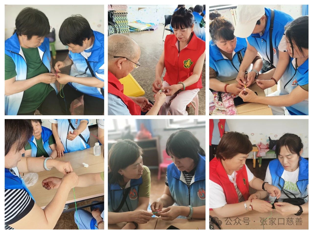 活动开始,海豚志愿服务队霍老师一边用通俗语言给大家讲解了五彩绳的编织手法,一边为大家演示。五彩绳手链看似简单,但实际操作起来却颇具难度,从打结到绕指,从压线到穿线,再到搭线、收线等步骤,无一不需要精心对待。编织过程中,听障人士温翠香,赵丽玲像老师一样耐心细致手把手教授。大家相互协作,一人用手固定五彩绳,另一人进行编结,大家相互交流,相互帮助,温馨的气氛洋溢在整个活动室。经过四十分钟的努力,大家成功掌握了编织技能,一个个精致、五颜六色的手绳呈现于大家眼前。大家互相欣赏、称赞,沉浸在手工编织五彩绳的快乐中。