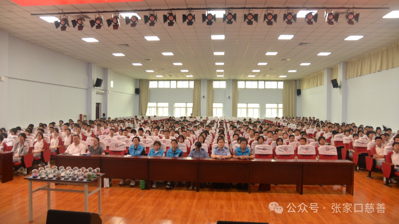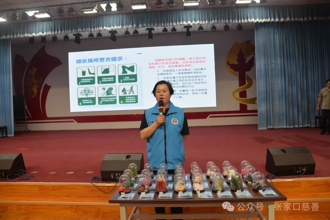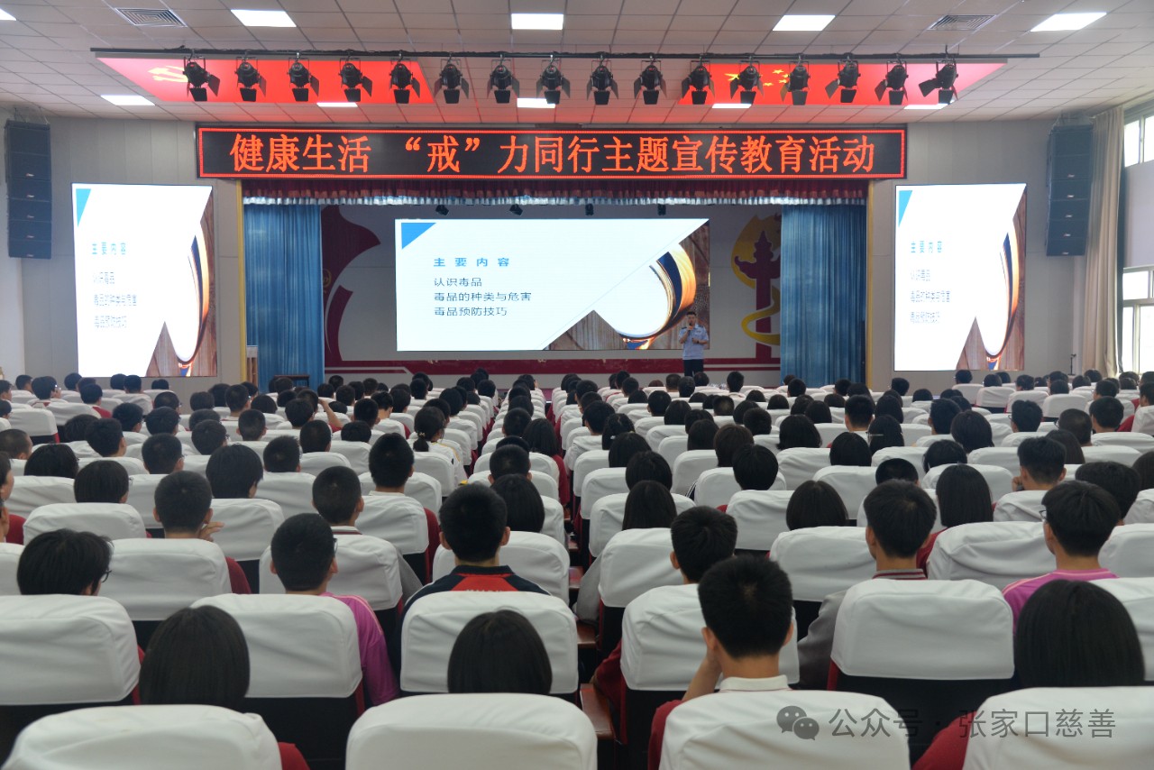 2024年6月19日下午,张家口市福德仁爱公益队的志愿者们在毛艳芳队长的带领下,与戒毒所民警一行几人,走进了宣化区第四中学,对高一四百余名学生开展了,以“青春无毒行,自护绘新篇”为主题的禁毒宣传教育活动。