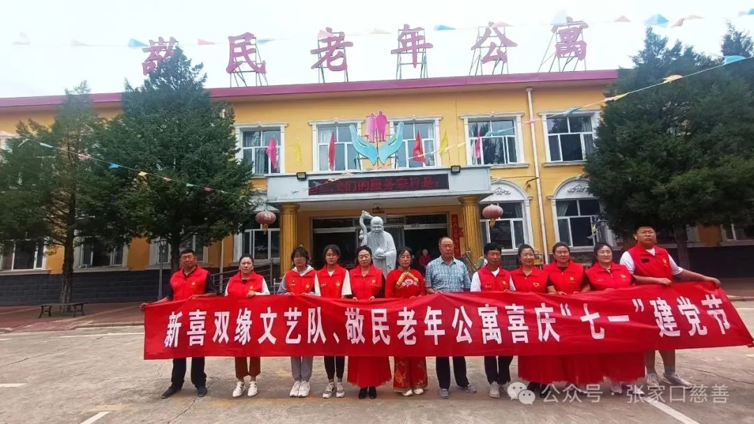 今天是七一建党节,就是中国共产党成立纪念日,是为了纪念中国共产党于1921年7月1日成立而设立的。那一天,一个古老的民族开始获得新生;那一天,一个曾经辉煌的民族又找到了崛起的支点;那一天,东方的雄狮开始昂起它不屈的头颅!2024年7月1日,新禧双缘义工队队长韩玉启组织志愿者来到敬民老年公寓开展喜庆七一建党节活动。参加活动的志愿者有:周桂兰、刘菊先、韩树萍、石俊兰、孟祥敏、蒋艳清、史金柱、王海霞、钱瑞林、刘雨杭、申雅婷、李向珍。我们共聚一堂,热烈庆祝党的生日。向伟大的党献上我们最真挚的祝福。身在中国,我们有着无比崇高的国家荣誉与责任。在新的发展阶段,我们必须坚持志愿服务不断创新,不断发展,为我们的祖国建设贡献自己的力量。在庆七一的同时展开慰问老人的活动。中国是一个文明古国,自古以来以孝为中华之美德,关爱老人,尊敬老人,孝敬老人,是我们中华民族几千年来的文明体现,也是我们中华民族的传统美德。所谓“老吾老以及人之老”,给老人多一份关爱,形成全社会爱老尊老敬老助老的良好社会风气。将这种美德不断发扬光大,是我们义不容辞的责任。在活动期间志愿者王海霞为老人们演唱歌曲《守望的爹娘》,钱瑞林为老人们演唱晋剧打金枝选段,韩玉启,钱瑞林,王海霞演唱二人台,团队秧歌队,给老人们扭秧歌。与老人互动,一片其乐融融的景象,老人们脸上都洋溢着幸福的笑容。