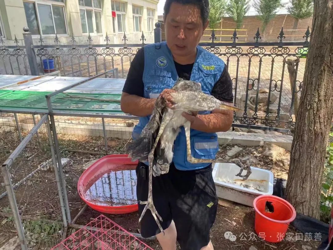 2024年6月28日中午,阳原野生动物救助中心接到爱心人士电话,称其在八马坊发现一只大型鸟类,翅膀无法伸展,疑似国家野生保护动物,需要及时进行救助。
