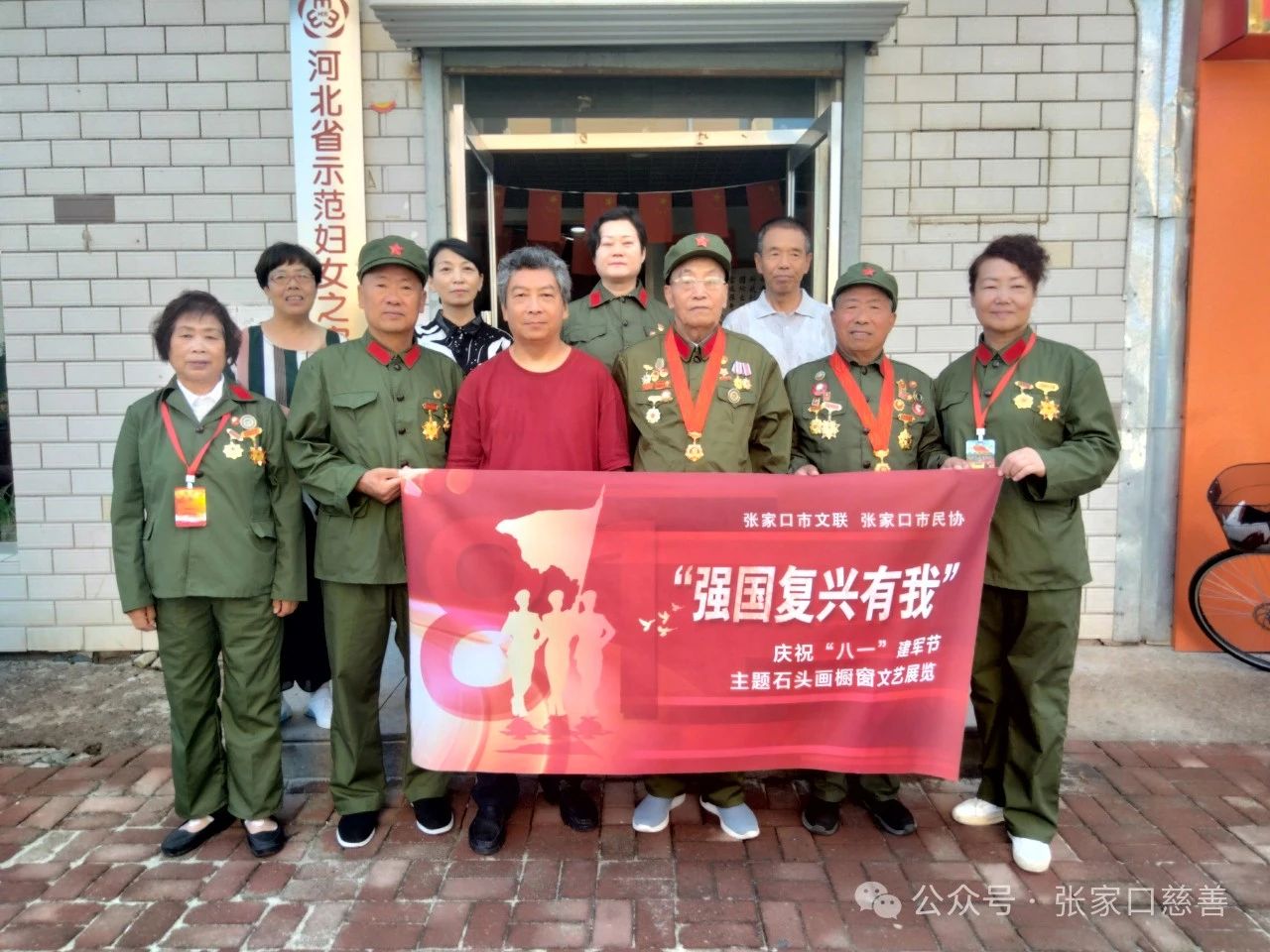 陈智旺石头画工作室是张家口市唯一的一处由张家口市石头画非遗传承人石头画作者陈智旺创办的工作室。这次展出的作品主要是以军事题材的作品。有董存瑞,黄继光,英雄儿女,中印边境五英雄,英雄的母亲,军人风采,长津湖英雄等一系列描绘英雄的石头画。对退役军人触动很大。四十多年军龄,六十多年党龄的老军人李书庭看了展览,感慨的讲述了自己在军旅生涯中,英雄人物对他的影响。赵凤英特别讲述了八一南昌起义对中国的巨大贡献。老军人钱林等退役军人都谈了自己在学习英雄,在军旅生涯中受到了很大的鼓舞。大家一致认为,通过这次参观,更加崇拜英雄,敬仰英雄,传承英雄精神,老有所为继续发挥余热。