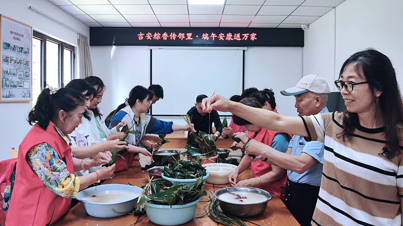 端午佳节,粽叶飘香。为弘扬中华民族传统文化,传承敬老爱老的传统美德,5月29日上午,众康生义工志愿服务队联合桥东区工业路街道吉安社区党委在吉安社区活动室开展了一场“端午粽飘香  浓浓敬老情”的主题活动,通过包粽子、送关怀的形式,为社区老人送去节日的温暖与祝福。参加活动的有吉安社区党委书记呼婷婷、众康生义工志愿服务队的志愿者、吉安社区的工作人员共30余人。
