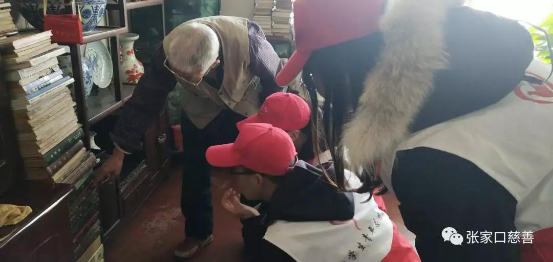 活动开始前校青协的部长向部员们讲解了各个老人的特殊情况,以及与老人进行交流的技巧,提醒活动的特殊性以及安排志愿者分组。随后志愿者按照既定安排进入老人家里。志愿者们与爷爷奶奶坐下来聊天,听爷爷奶奶讲解张家堡这一张家口特色文化遗产,还帮助老人打扫卫生,帮助爷爷奶奶去社区挑水。志愿者们陪伴老人度过了愉快的上午,并与老人合影留念,最后志愿者们集体合影。