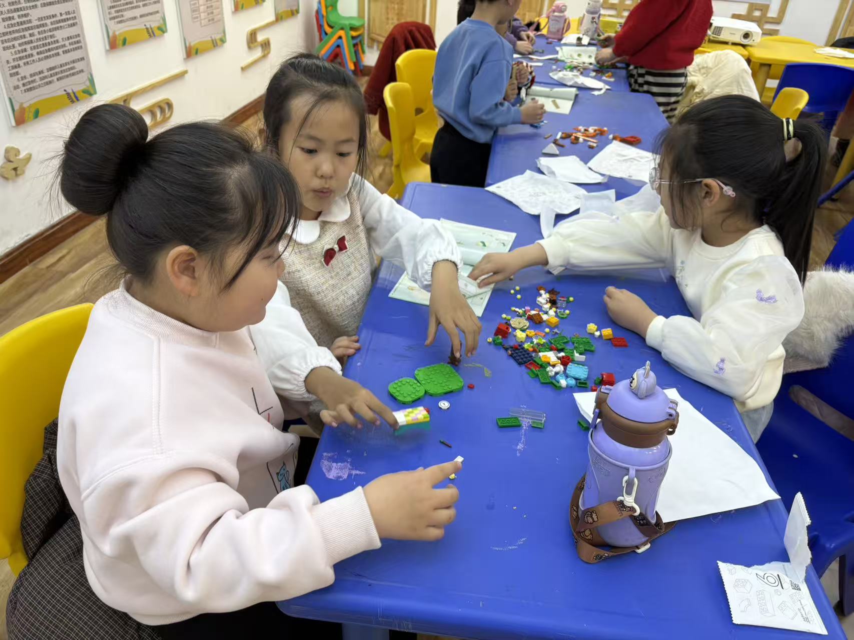在温馨的活动空间里,小小的指尖轻轻触碰、认真拼接,将零散的零件变成城堡、小屋与奇妙世界。每一次搭建,都是创意的种子在生根发芽;每一次协作,都是友谊的桥梁在悄悄架起。孩子们围坐在一起,时而低头专注琢磨,时而抬头分享巧思,清脆的笑声与热烈的讨论,交织成最动人的童年乐章。