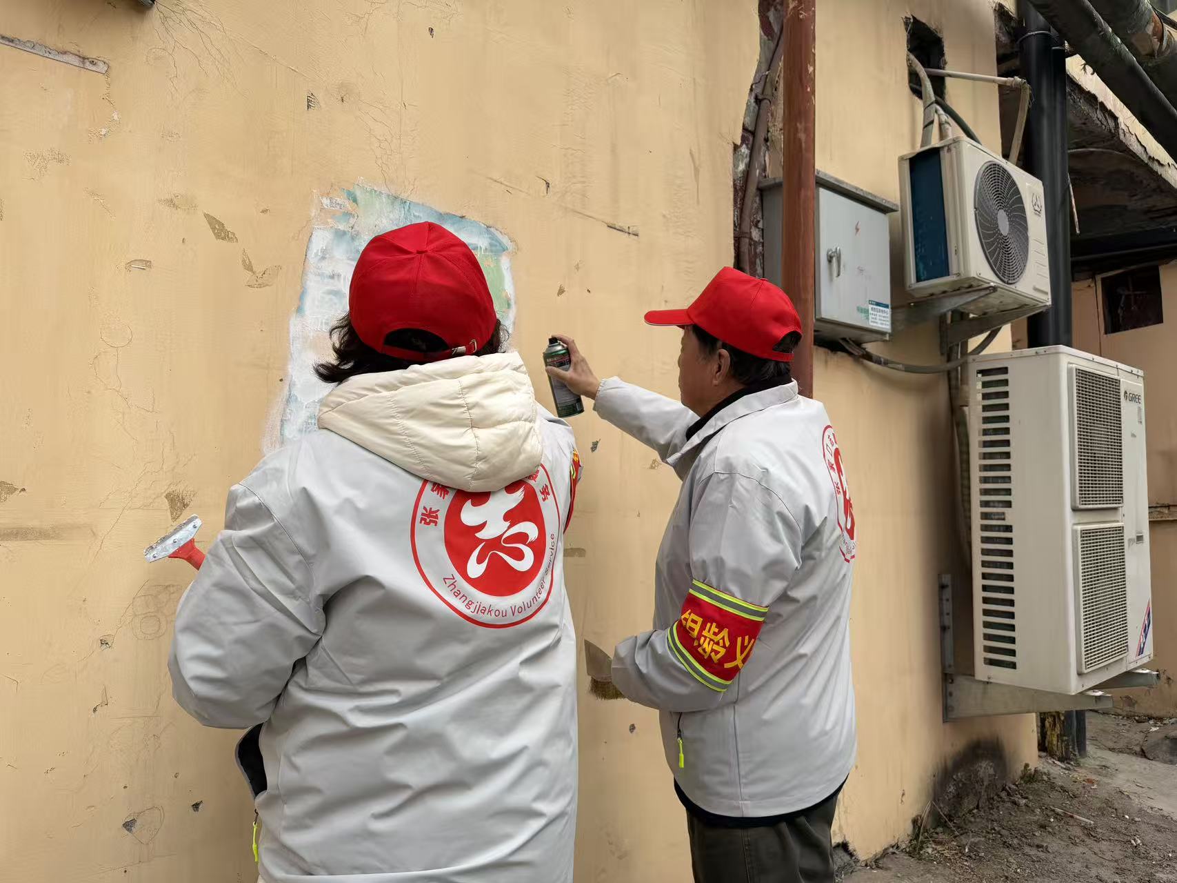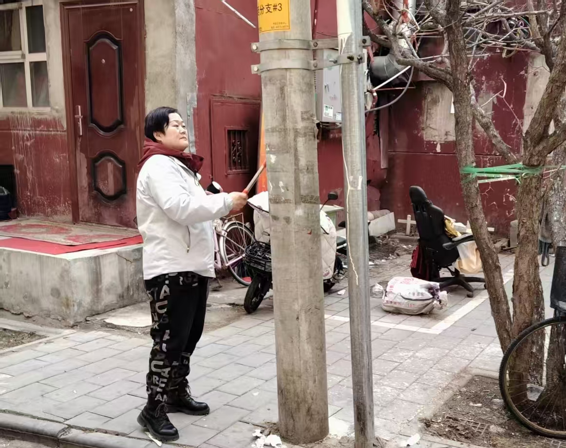 队长毛艳芳、党支部书记冀惠仁现场指挥、带头实干,与队员们一同不怕脏、不怕累,用实际行动诠释公益担当。大家把元台子社区的六栋楼,18个单元,从一楼到六楼的小广告全部清理干净,志愿者们热情饱满、干劲十足,经过集中整治,社区环境焕然一新,得到了居民一致认可。