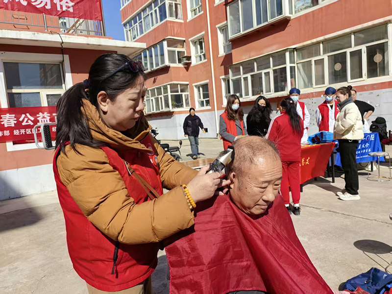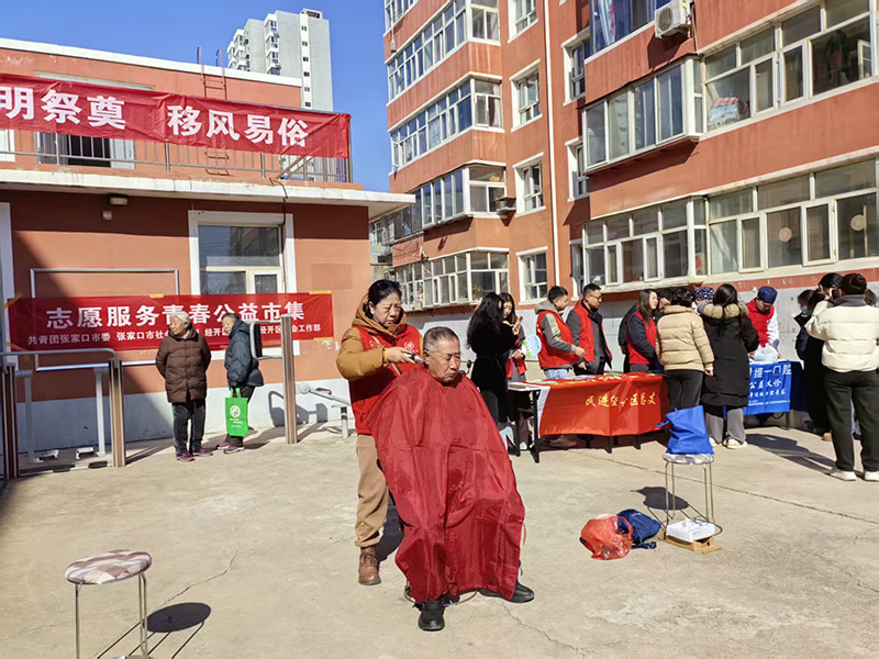 3月19日,在中国传统的二月二龙抬头来临之际,由共青团张家口市委、张家口市社会工作部、经开区团工委、经开区社会工作部联合举办的“志愿服务青春公益市集”活动,在探机小区16号院温情启幕。本次活动以“志愿服务青春公益市集”为主题,聚焦群众日常需求,整合优质志愿资源,旨在打通服务群众“最后一公里”,传递青春公益温度 。福德仁爱公益队受邀参与,由刘广琴、于庆林组成的义务理发服务团队,以专业技能和暖心服务,为社区居民送上便捷贴心的义剪服务,成为市集里一道温暖的风景线。