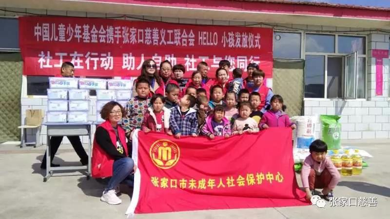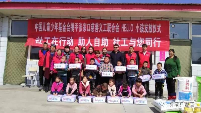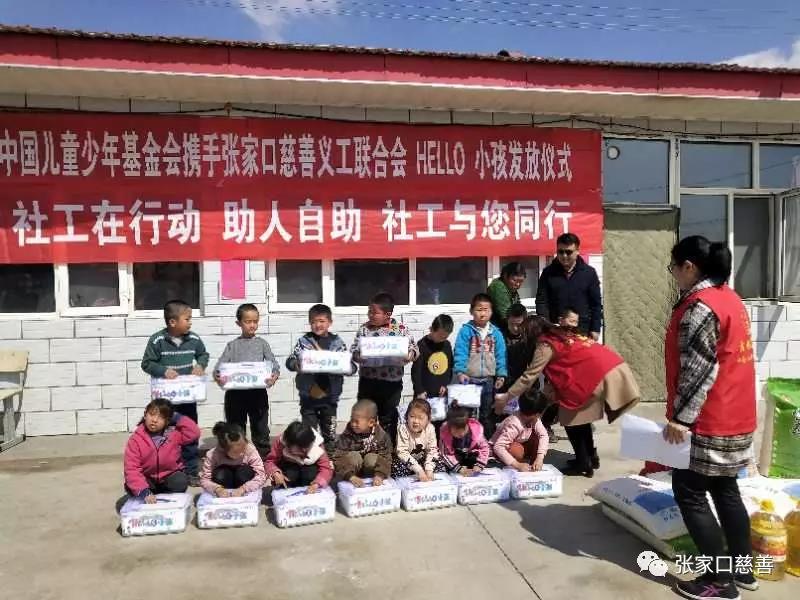 2019年4月10日,中国儿童少年基金会携手张家口慈善义工联合会在阳原县辛堡乡北辛庄小学开展“HELLO小孩”发放仪式。参加此次发放仪式活动的领导有:阳原县辛堡乡北辛庄驻村应急救援局罗书记、张家口市未成年人社会保护中心主任王晶、张家口市张垣博爱社会工作服务中心外联部长阎世红、阳原爱在泥河湾互助会副会长闫海龙。